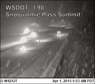 Wouldn't you know it? This is the most excitement we've seen in the mountains all winter. Snoqualmie Pass was closed last night because of heavy snow, and chains are required this morning for all the unfortunates who have to drive over it. The ski areas are talking about opening this weekend.