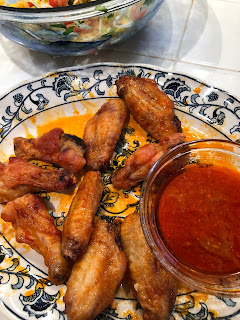 I made the classic Frank's Hot Sauce wing recipe last week. No marinating, no basting, so simple. Just roast the wings naked until crispy and tender, then dip them piping hot into a mixture of Frank's Hot Sauce and melted butter. Serve up the delicious mess. I think the ratio was one part butter and three parts sauce. The recipe is all over the Internet.