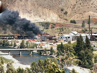 By the 1940's, logging was big business in Okanogan County, and the Twisp Wagner Mill was the largest employer in the Methow Valley for many years. The mill burned to the ground in the 1970's (above) and the fire almost took the town with it.